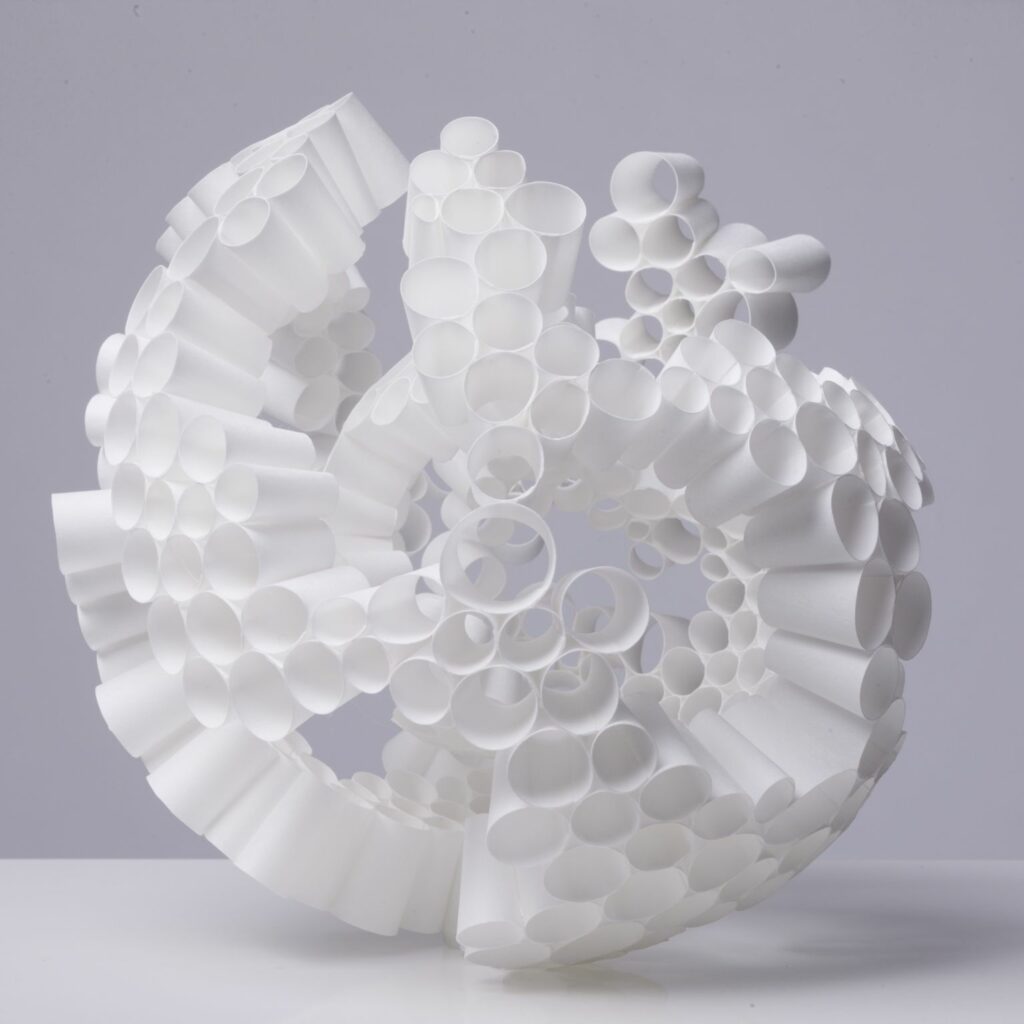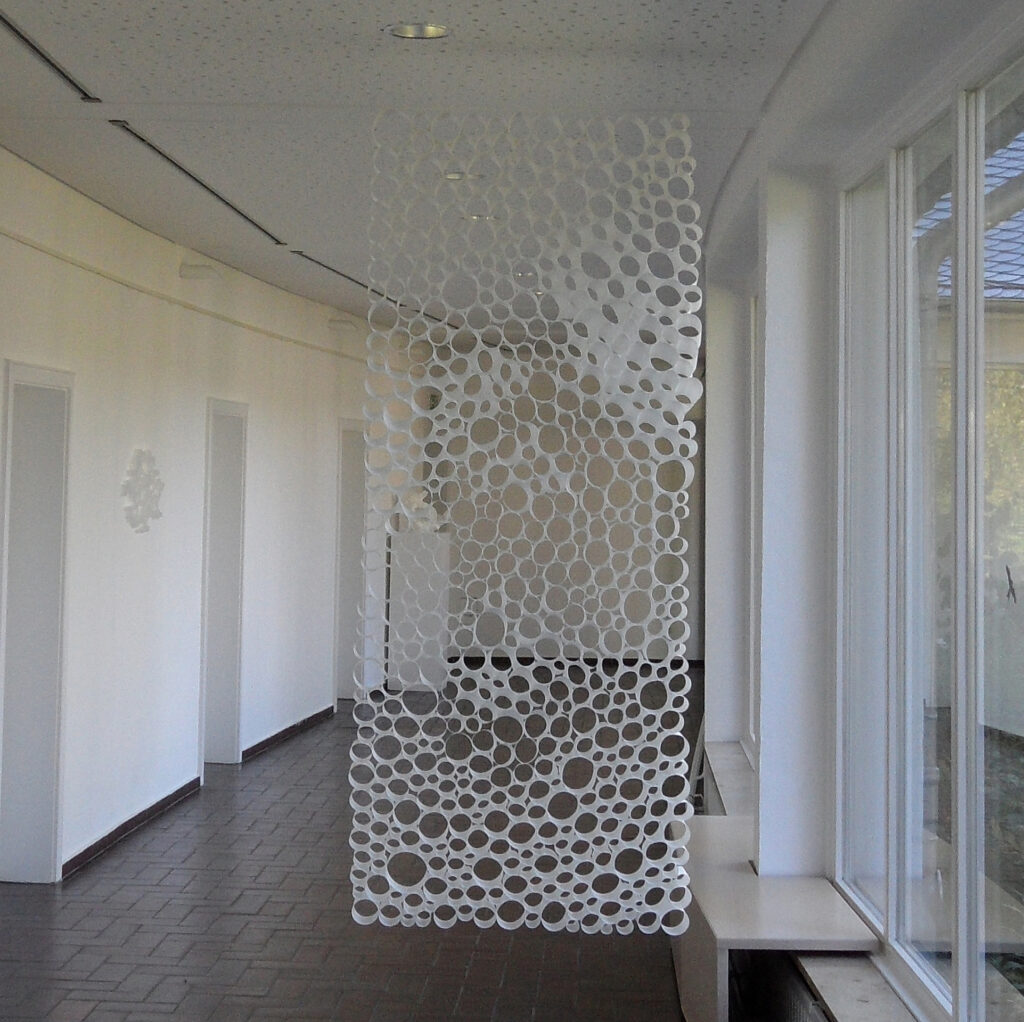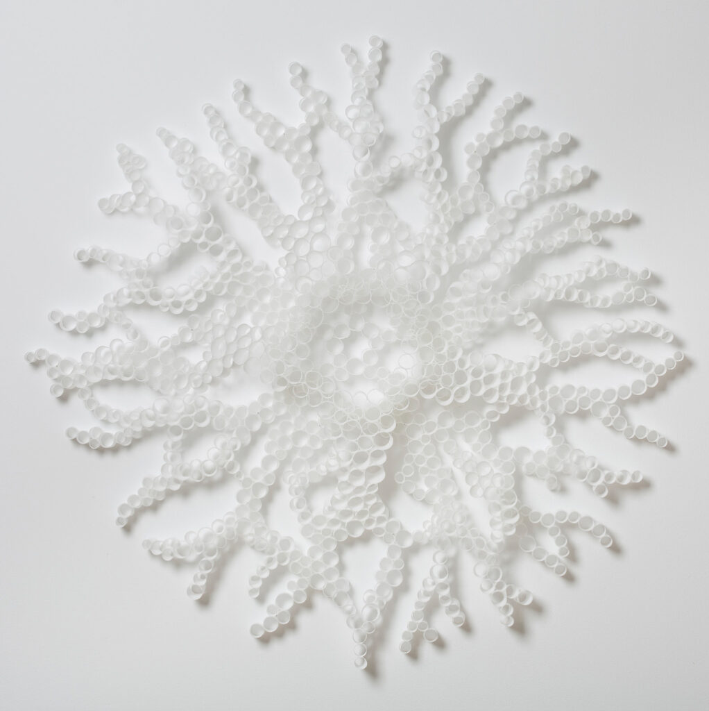 Carcasses 2012-15 Non woven fabric, hotmelt / Vliesstoff, Heißkleberim Uhrzeigersinn / clockwise:Carcasse 6 (Fenster), 2012 L 214cm B/W 90cm T/D 9cm Carcasse 7 (Knospe 2), L 53cm B/W 52cm T/D 42,5 cmCarcasse 9 (Tulpe), 2015 L 58cm B/W 90cm T/D 55 cm Carcasse 11 (Stern 2), 2015 L 90 B/W 87cm T/D 6,5 cm